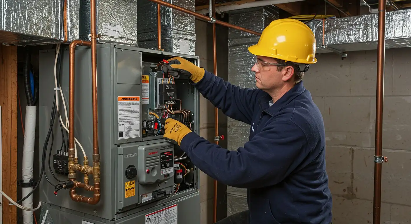 Technicians carefully set the new unit, connecting all gas lines, electrical wiring, thermostat components, and flue venting where applicable.